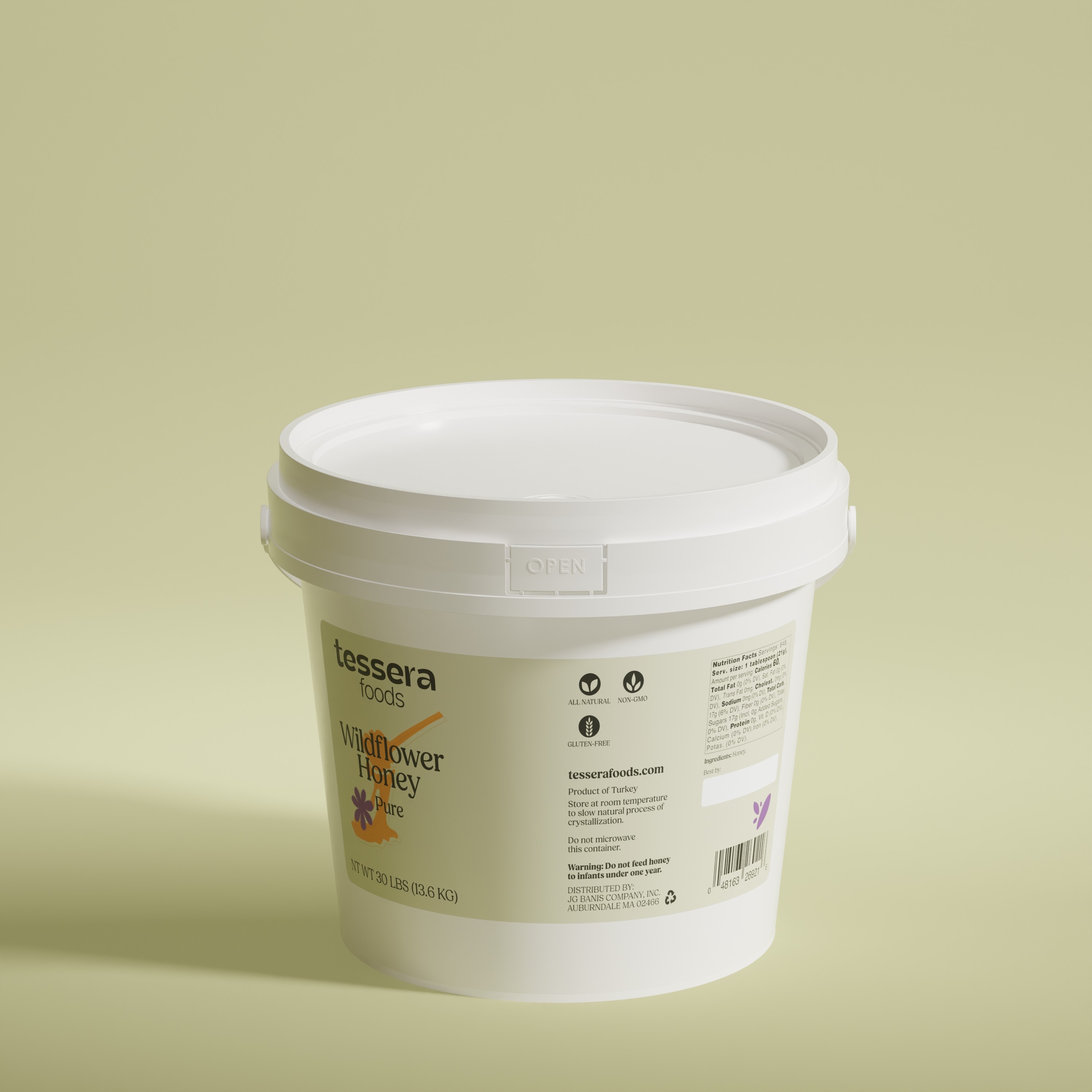 Pure wildflower honey with rich floral notes and natural sweetness. Unfiltered and all natural, ideal for foodservice, baking, sauces, beverages, and large-scale culinary applications.
